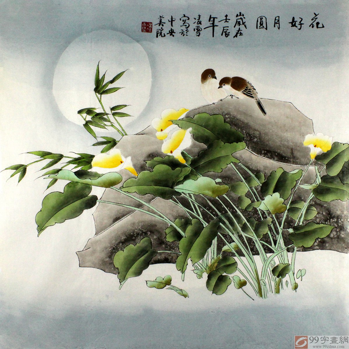 【作品简评】自古以来,人们对花鸟画就十分喜爱,众多达官贵族、文人雅士或写诗咏歌,或作画颂花鸟,力求将花鸟画的风姿和神韵定格住。凌雪老师的花鸟画作品集美丽典雅于一体,集万千宠爱于一身,享尽人间繁华和盛誉,这幅《花好月圆》是凌雪老师近期上架的作品,她将鸟的灵动和花的神韵、叶的清翠、竹的长青刻画地淋漓尽致,展现出独特的艺术价值,是装饰挂画的艺术精品。