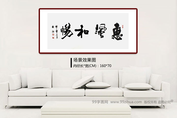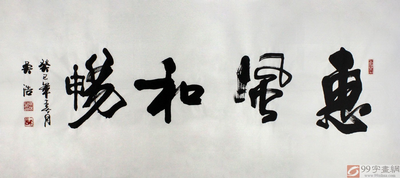 【作品简评】“惠风和畅”中,惠:柔和;和:温和;畅:舒畅。柔和的风,使人感到温暖、舒适。 吴浩的书法博采众长、力求新意,笔法老练,苍劲有力,具有极强的视觉冲击力,寓意柔和的风,使人感到温暖、舒适,适合挂在客厅或书房。