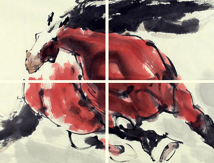【作品简评】(99字画网艺术评论员玉洁)王向阳先生的骏马图以动入画,以静制胜,这匹狂奔不已的骏马,身着红装,一路长奔而来,强劲有力的双腿迈着矫健的步伐,飞舞的鬃毛和马尾随之飞扬,无不给人以视觉上的震撼,值得收藏。同样,以墨块渲染的草地为背景,形容马驰骋于草原,来源于草原,颇具视觉美感,给人以无尽的艺术享受。让人扼腕感叹,过目不忘,感受到一种艺术的洗礼!在风水中,马奋进于鸿运,能带动财运的流转,使事业能更加顺遂,寓意飞黄腾达。