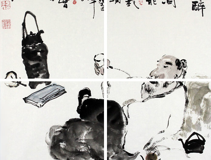 【作品简评】(99字画网艺术评论员晓曼)李胜春先生的《茶亦醉人何必酒 书能香我不须花》水墨人物画作品,绘一悠然自得、举杯畅饮、醉卧青石之先贤,从神态和姿势中可看出其长者情趣怡然、隐士情怀之闲情雅致,他手持酒盅、畅饮其中,观其作品却自有一股淡淡的芳香和悠然自得之情调,让人琢磨,耐人寻味。