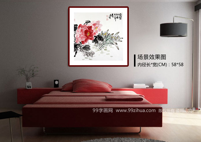 【作品简评】(99字画网艺术评论员灵嫣)李胜春的这幅写意牡丹画《富贵神仙》,描绘了正在浓艳盛开的牡丹花的形象,作者把牡丹的花蕊、花朵、花叶刻画的细致入微,生动逼真,在李胜春笔下,牡丹花浓淡相宜,有浓艳的大红还有淡雅的粉红,把牡丹的娇艳与雍容华贵表现的淋漓尽致,极具魅力,从而使周围的花草顿时黯然失色。牡丹花象征着富贵吉祥,此幅作品挂于家中,寓意着能给家人带来吉祥富贵的征兆。