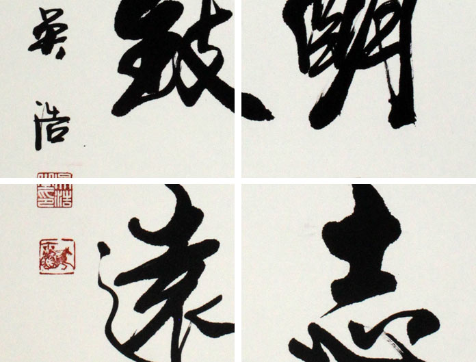 吴浩先生书法众体兼备,功力浓厚,尤以行楷见长,其行楷清新俊逸,刚健朴实,笔圆势方,动静相依,错落有致,抑扬节应,气韵生动,汲取了唐碑风骨, 魏晋神韵,寓刚健于婀娜之中,寄雄强于委婉之内,在博涉诸家的基础上形成气势浑厚,苍劲挺拔的独特风格,吴浩先生书如其人,坚忍不拔,风格高尚,对创作态 度十分严谨,书作力求精美,作品几经推敲方能成稿。