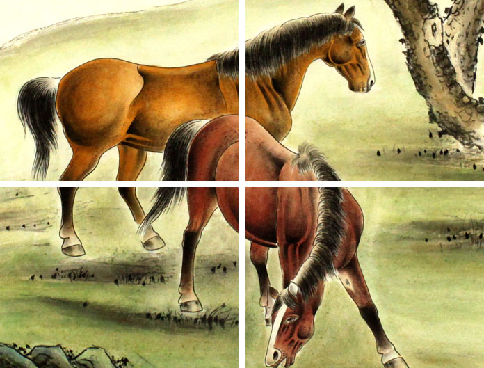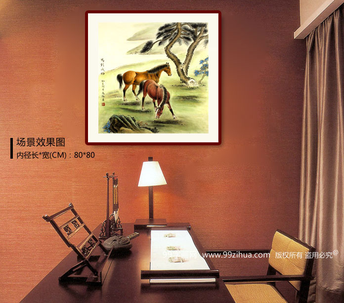 【作品简评】(99字画网艺术评论员玉洁)赵逸梅的此幅《马到成功》双骏图设色典雅、线条流畅、笔风细腻、构图讲究、古松苍天、草木茂盛润泽清新,呈一派生机勃勃的景象。艺术家赵逸梅在作画风格上和用笔上皆用心灵作画,每一幅作品都仔细推敲、认真揣摩,经过一番研究后方可成稿,在她的作品中透露出一种温馨、祥和、静谧的文化气息,她的骏马图温顺、体态端庄,在国画风水中,“双骏”有白头偕老、夫妻关系和睦,同时,也有马到成功、飞黄腾达之意,挂在家中祝愿夫妻生活幸福美满、和和美美;挂在办公室祝事业蒸蒸日上、马到成功!