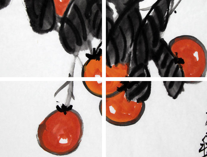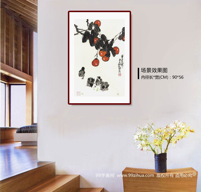 【作品简评】 (99字画网艺术评论员晓曼)刘纪先生的这幅柿子小鸡图《事事吉祥》,绘硕果累累,红彤彤的柿子挂满枝头,柿子是吉祥的图饰,柿与“事”同音,它鲜艳红火,给人以喜庆、吉祥、好运之感,兼以墨色交融、浓而不艳的画作在凝重的笔触和朴实的笔墨下加以展现。整幅作品墨色酣畅淋漓,设色艳而不俗,可以说达到形神兼备、气韵俱佳的神奇效果,是客厅字画、玄关字画之选,推荐选购、收藏!