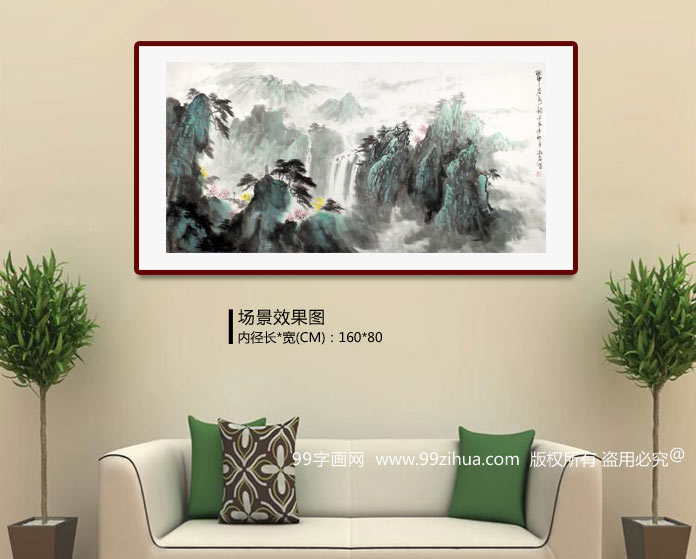 【作品简评】(99字画网艺术评论员路丰)此幅青山秀丽山水画《翠谷泉韵》山峦层叠,雄伟壮观,树木繁茂而生,山势陡缓奇峻,明暗对比强烈,线条流畅,云雾遮掩半山腰,这神仙般的气势真是人间仙境之美景,让观者不禁感叹大自然的鬼斧神工。这运气穿绕在青山之中,赋于大山灵性之气息。是办公室字画、客厅字画之选,有靠山、聚财之意,建议选购!