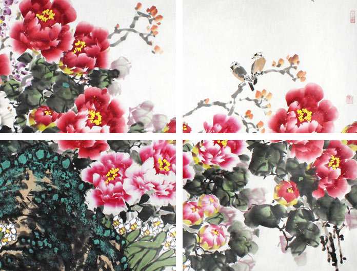 【作品简评】(99字画网艺术评论员路丰)此幅牡丹画作品《富贵人家》,牡丹花大色艳,设色喜庆亮泽,春风把盛开的牡丹吹动,鸟儿在枝间休憩赏景,斜入画面的一株紫藤,迎春风,送吉祥,有紫气东来的美好征兆。曲逸之先生的此幅富贵牡丹富有动感,层次丰富,在注重传统笔墨的同时,更是将层次感和动态美运用到国画创作中,构图繁而不乱,情绪盎然饱满,意蕴之美令人沉醉,堪称佳作。