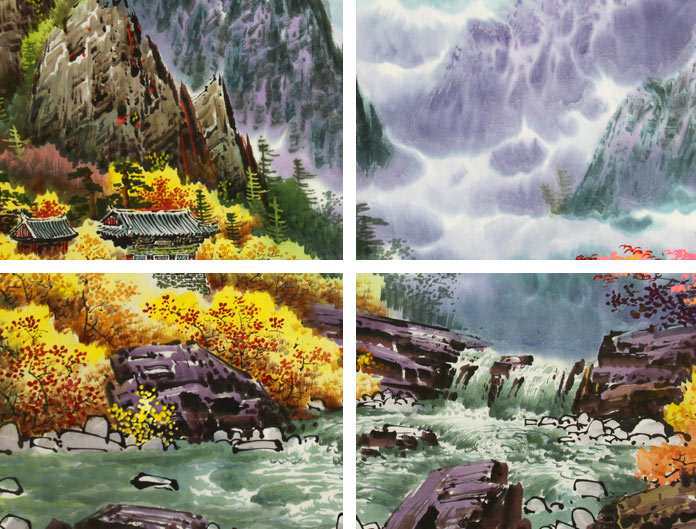 朝鲜画特点是笔力挺拔,色彩艳丽,风格清雅,尤其是山水画,画面丰盈,水柔峰巍,树草葳蕤,诗意盎然,看着这些山水画,深切感受到朝鲜画家对祖国的热爱,对大好河山的一片深情。 朝鲜国画展现出来的纯净气质,朴实氛围值得我们屏息欣赏,而朝鲜国画作为极具民族意境的作品,极其符合中国人的传统审美取向,充满了难得的灵动氛围,写实与写意完美的融合,令人沉浸在难得的轻松愉悦的氛围中,是十分难得的收藏佳作。