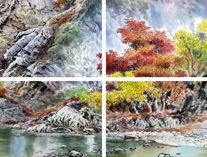 朝鲜画特点是笔力挺拔,色彩艳丽,风格清雅,尤其是山水画,画面丰盈,水柔峰巍,树草葳蕤,诗意盎然,看着这些山水画,深切感受到朝鲜画家对祖国的热爱,对大好河山的一片深情。 朝鲜国画展现出来的纯净气质,朴实氛围值得我们屏息欣赏,而朝鲜国画作为极具民族意境的作品,极其符合中国人的传统审美取向,充满了难得的灵动氛围,写实与写意完美的融合,令人沉浸在难得的轻松愉悦的氛围中,是十分难得的收藏佳作。