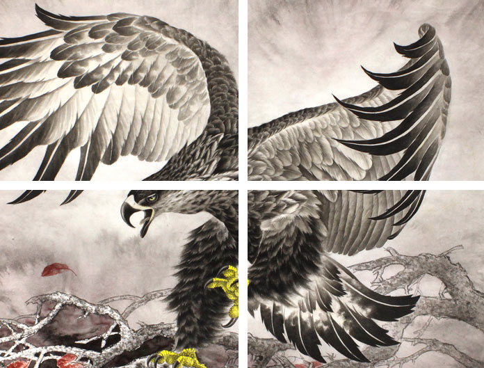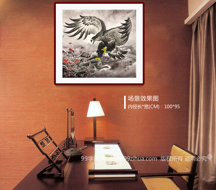【作品简评】 雄鹰展翅,翱翔在波涛的大海上,驻足于天地之间,身形威猛,奋力搏击,目光炯炯,鸣福祈祥,有气吞山河之势。鹰也是中华民族的图腾之一,象征着勇于开拓,不断进取的精神。这种作品无论赠送友人、领导还是自赏都会给人以激励、鼓舞,是办公室字画、客厅字画之选,推荐选购!