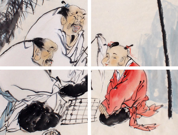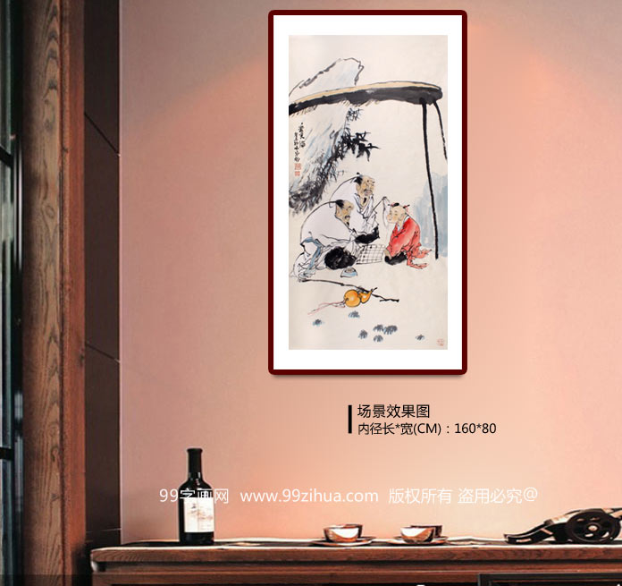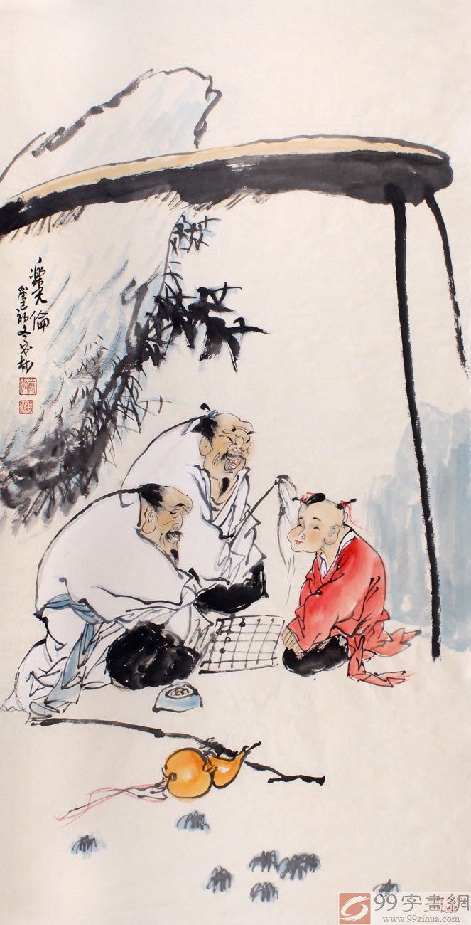 【作品简评】 董书林老师的人物画作品《乐天伦》,绘座座山峰间,茫茫云海中,一长者教一孩童下棋的场面。孩童表现出一幅心不在焉的样子,双眼向外望去,好像在思考去哪里玩耍,一葫芦横穿画面中,有福禄之美好寓意。同时,挂于家居客厅、办公室都是很不错的选择,推荐选购!