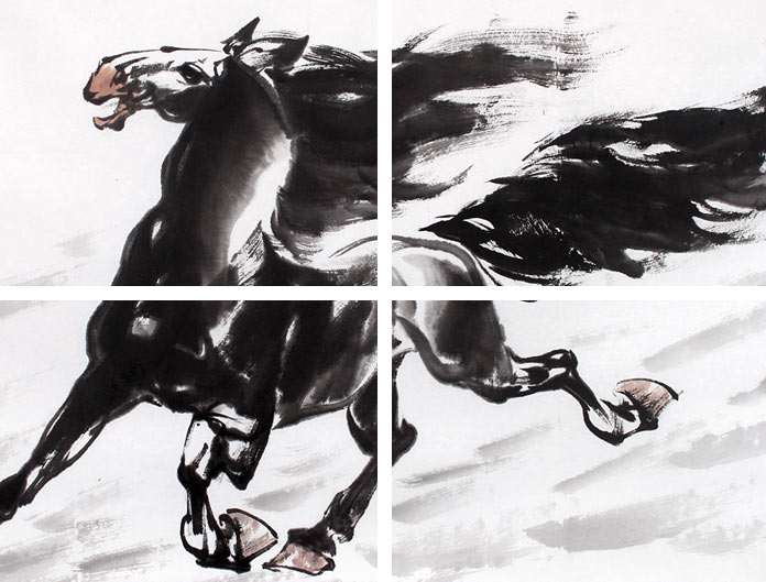 几十年来,徐鸿军先生广拜名家,博采众长;笔耕不缀,他的马以线为主,水墨至上,不求色似,但求意足,气韵清新,形象生动。