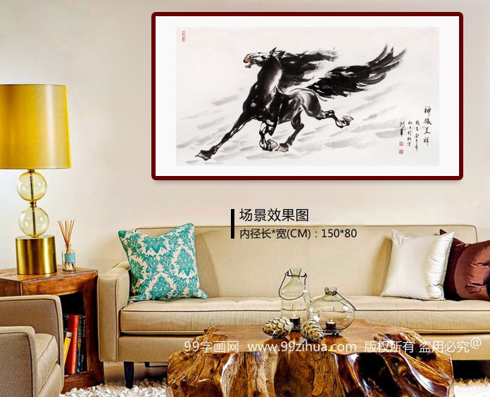 【作品简评】 (99字画网艺术评论员晓曼) 徐鸿军先生的这幅骏马图《神骏呈祥》身姿威武,步伐矫健,脚踏黄土地,满载世间祥云,一路奔跑,马鬃飞扬,它是力量的象征,代表中国人一种勇往直前、拼搏向上的毅力。同时,马有飞黄腾达之意,象征勇往直前、马到成功!挂在办公室喻工作积极向上、敢于拼搏、事业蒸蒸日上、生意红红火火等!。