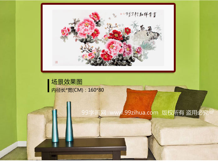 【作品简评】 王宝钦先生的牡丹画作品,喜庆祥和,飘逸洒脱,灵动中富含生机,飘逸中自显富贵,每一朵牡丹都是别样的秀雅、端庄。此幅牡丹画作品《富贵祥和》左方花团锦簇,右方青石耸之,两只鸟儿在赏景观光,富含生机和动感,一幅飘逸清秀之作映入画幅中,无论是装饰悬挂还是收藏皆为上等之作,建议选购!