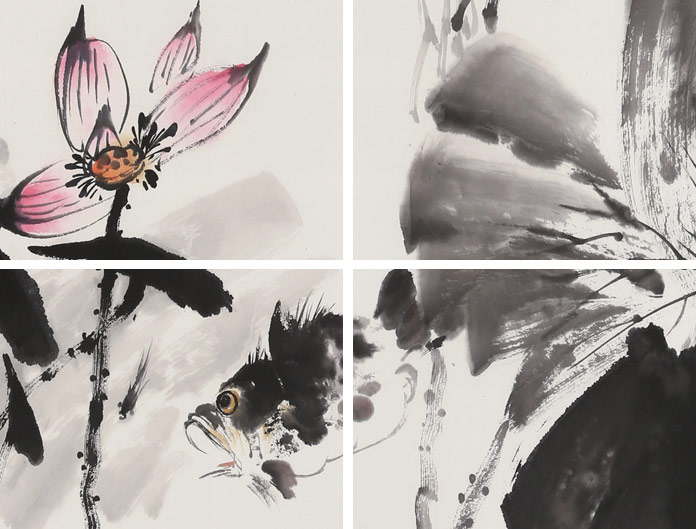 【作品简评】荷花,温文尔雅,香远益清,有如出水芙蓉一般,或掩映,或怒放,亭亭玉立,随风摇曳,给观者留下清幽高洁之美。王宝钦先生的荷花更是不可多得,他的国画荷花飘逸洒脱,用墨洒脱,用笔流畅,鱼儿赏景,荷花怒放,一幅清幽飘逸的水墨荷花映入画幅中,可观,可玩,可收藏!