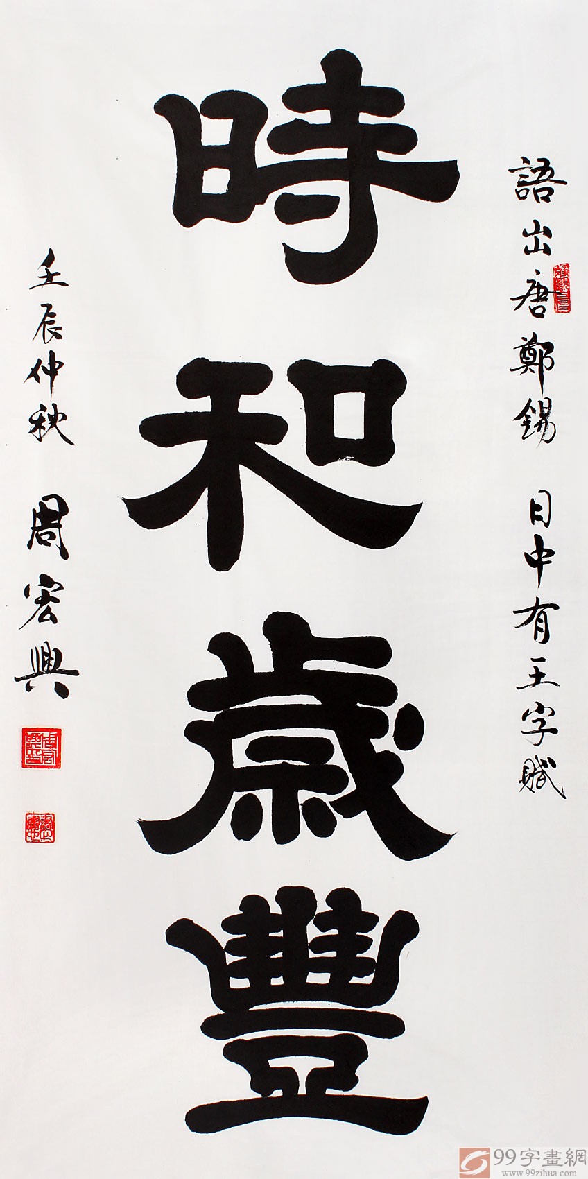 周宏兴传略被收入《世界名人录》、《中国专家人才大典》、《跨世纪中华英精英大典》、《中华人民共和国创业功臣大先辞典》、《中国艺术家辞典》、《中国作家大辞典》、《中国新诗大辞典》、《二十世纪中国收藏家大全》等。 当代书画大师为之题词:通古今之变 成一家之言 当代隶书大师刘炳森为之题词:举前贤之未及 启后学于成规 当代书画大师王遐举称赞其隶书功底深厚,凝重古朴,并为其题词曰:承前启后 继往开来。