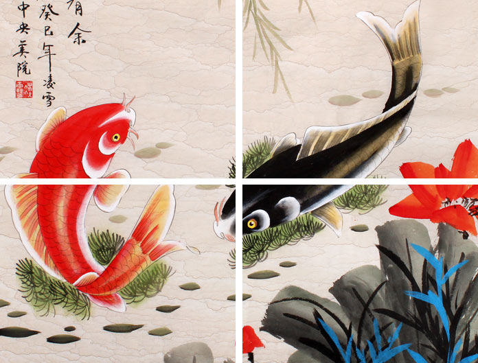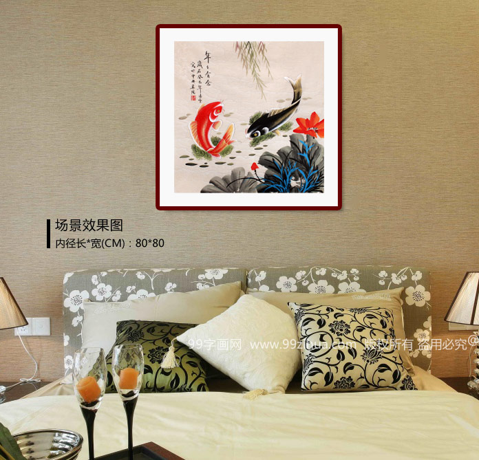 【作品简评】(99字画网艺术评论员晓曼)中国人喜欢鱼,鱼是水中的精灵,画家以鱼作画,大多是喜欢鱼与余谐音,中国人表示吉祥的祝福就有连年有余,吉庆有余,购买这类艺术品包含着深深地祝福,定会在家居装饰中占领一席之地。画面淡雅清丽,几株水草、荷花、垂柳衬托得更加真实自然。一黑一白两条鱼儿各具神态,互相嬉戏玩耍,曼妙的身姿灵动而极具传神的艺术效果。