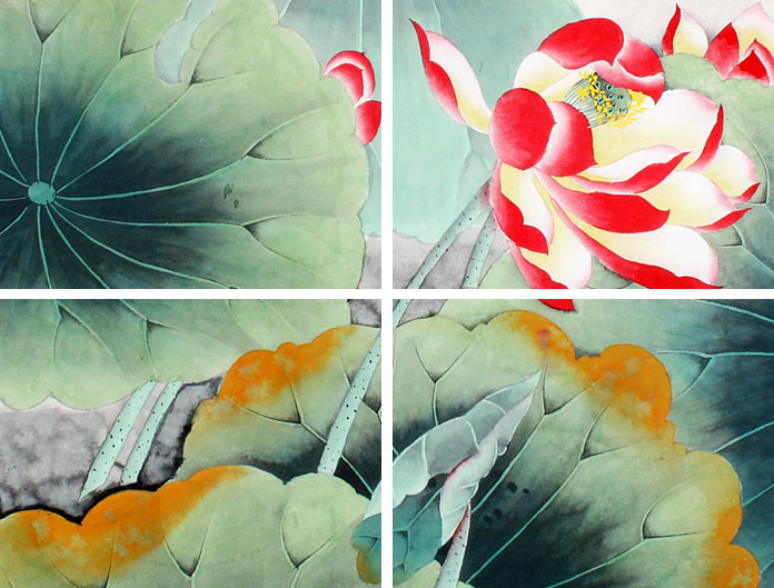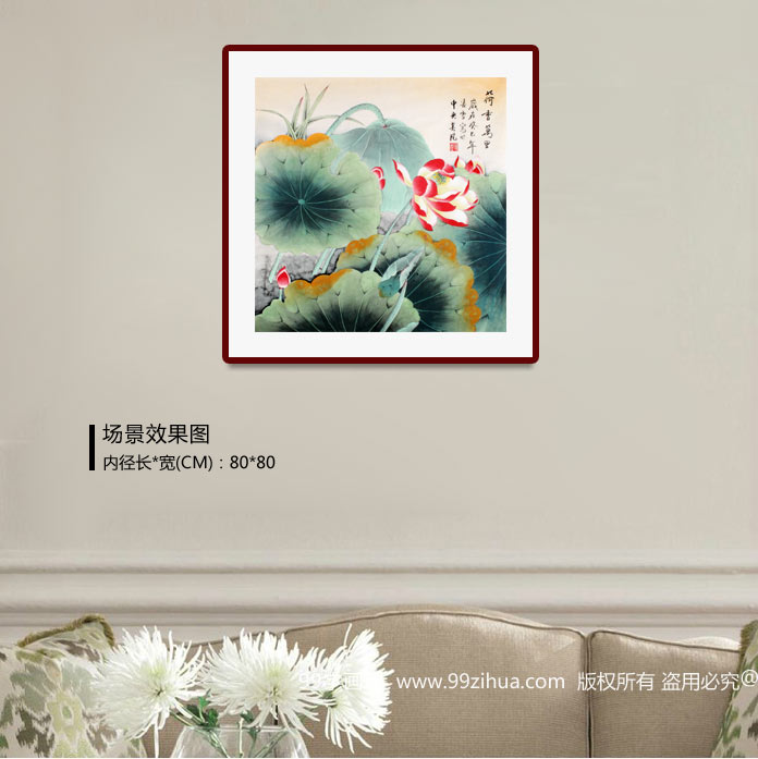【作品简评】(99字画网艺术评论员晓曼) 荷花,清水出芙蓉,玉洁冰清,是艺术家笔下的常客,自古就有“吉祥花、净土花、佛花”之说法,它以特有的美让无数艺术家沉迷其中,留下了众多荷花的墨宝,它清新艳丽,以独有的创造力彰显了画家内心的清静,表达作者对荷花的喜爱之情。