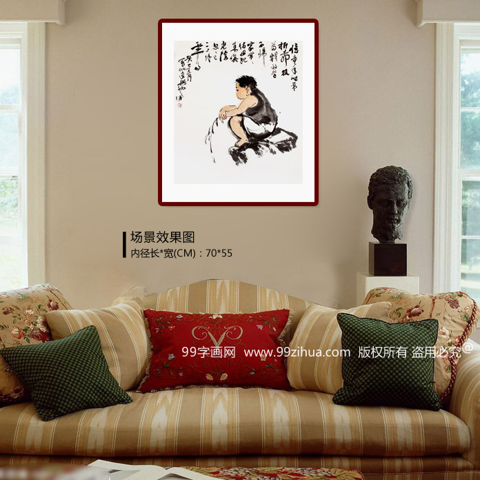 【作品简评】(99字画网艺术评论员晓曼) 本副作品水墨淋漓,画面简洁生动传神,落款为:忆童年时光,常折柳枝为戏;放学不归,常要母亲来唤。光阴忽忽已二十余年。通过此幅画作充分写出作者对童年的怀念和向往之情。