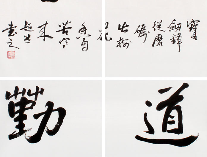 【作品简评】 天道酬勤,是指多一分耕耘,多一分收获,也就是多劳多得。出自 《论语》 意思是说:上天会实现勤劳的人的志愿。有耕耘就会有收获,我们只要不懈努力,最大限度的完善充实自己,千方百计的提高自己的竞争实力,就会有一个美好光明的明天。