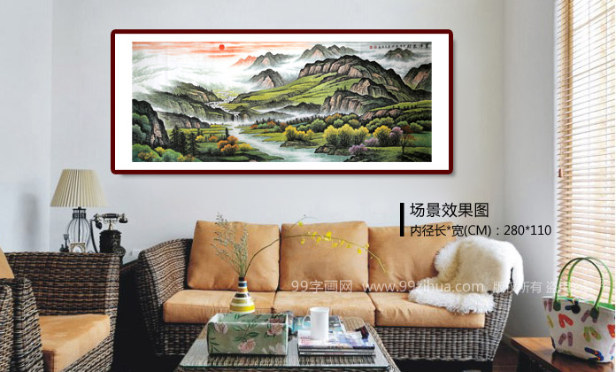 【作品简评】此幅聚宝盆风水画《宝潭聚财》大气磅礴中蕴含风水,红日寓意:“鸿运当头”;瀑布寓意:财源滚滚;水潭寓意:“聚宝盆”;整幅作品满含鸿运当头,财运如浩浩瀑水,生生不息之意。作品中远山层峦叠峰,更表达了泉源广长、宝潭聚财的意境。风水上说:“山管人丁,水管财”。因此不管是客厅、办公室、经商场所挂这幅山水画都是非常吉利的。