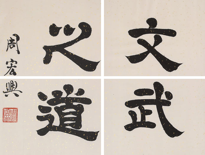 周宏兴教授自幼酷爱书法艺术,多年潜心研究与学习汉隶名碑,汲取众家之长,周宏兴逐渐形成了自己的凝重,古朴高标逸韵的风格,可谓典型的“文人书法”。近年来经过苦心钻研,先生又以指代笔,创造了“隶体指书”新书体。被专家誉为“中国隶体指书第一人,开创书法审美新天地”。 2004年9月29日晚,周先生应国家副主席曾庆红之邀参加了在首都人民大会堂举行的中秋国庆招待会,同时他在人民大会堂澳门厅向佳宾们展示其隶体指书长卷苏东坡《水调歌头》,引起与会者极大震惊。 周宏兴教授的书法艺术受到海内外广泛的关注。他曾四次赴日本举行书法展和讲学。其作品被我国和日本,韩国,美国,英国,印度,加拿大,马来西亚等众多的国际友人珍藏,数百家艺术馆,博物馆和报刊杂志收藏和刊登,并刻石于北京,山东,云南,广东,安徽,浙江等地,中南海和全国政协礼堂均收藏了他的巨幅书法作品,我国党和国家一些领导人,美国前总统布什,国务卿奥尔布赖特,希拉里等均收藏了他的隶书或隶体指书作品。