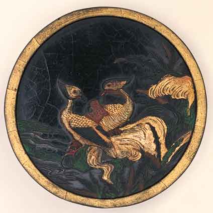 方于鲁文彩双鸳鸯墨, 直径9.6cm,厚1.6cm